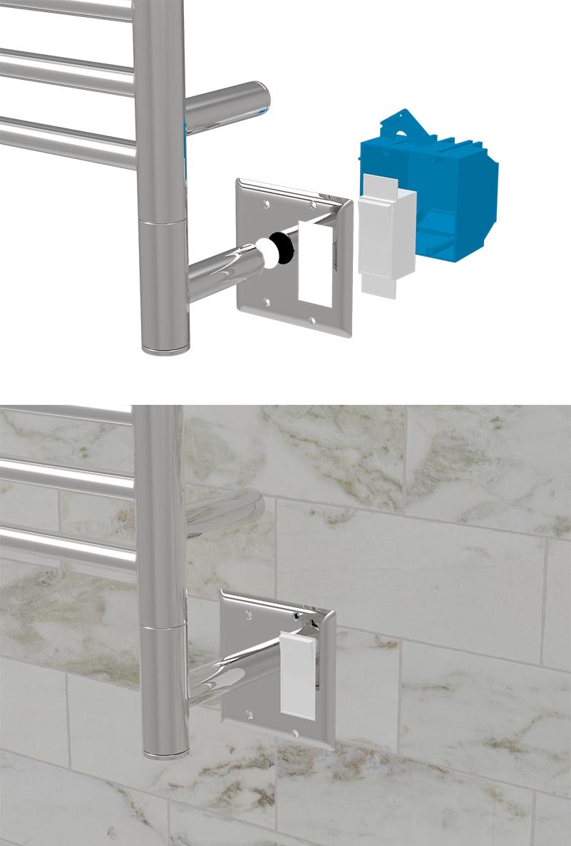 The radiant collection features affordable, wall-mounted towel warmers. Choose between a round or square bar design, straight or curved horizontal bars, and hardwired or plug-in. A shelf unit is also available for to warm/dry towels and provide additional storage. Made of high quality 304 stainless steel, they are offered in a variety of finishes. Rated at 50-150 watts, equivalent to a few light bulbs, they consume minimal power. Programmable timers can be added for additional control.
