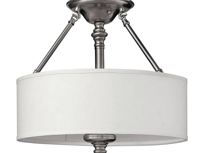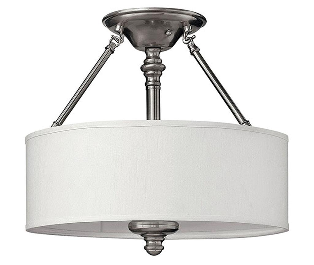 Hinkley®, 4791BN, Ceiling Light, Traditional, Series: Sussex, 120 V, 75 W Lamp, Medium Lamp Base, 3 Lamps, White Fabric Shade, Ceiling Mounting, Metal Housing Material, Brushed Nickel Housing Finish, 15 in H x 16 in W x 16 in L Dimensions