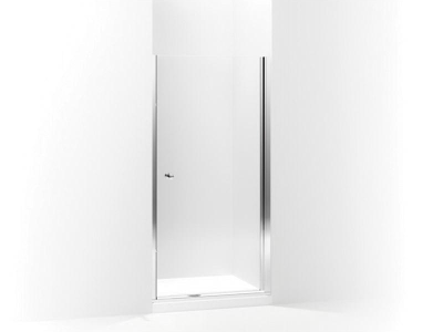 The Finesse® Peak frameless swinging door offers minimal metal framing around the glass and a simple knob handle to showcase the showering space. The headerless design allows for easy entry.