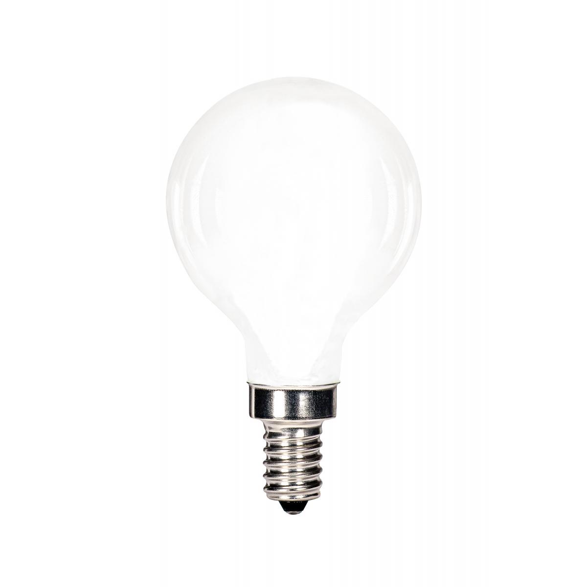 SATCO® LED Lamp, Dimmable, 5.5G16/LED/SW/3K/120V/E12 Designation, 5.5 W Wattage, 60 W Incandescent Equivalent, 120 V, E12 Lamp Base, G16 Globe Shape, 500 Lumens Lumens, 15000 hr Average Life, White, 80 CRI, 3000 K Color Temperature, Frosted Lamp, Enclosed Fixture, 360 deg Beam, 2 in Dia x 3.13 in L Dimensions