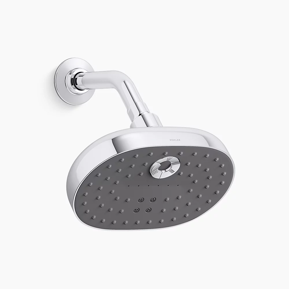 Relax in a shower that fully soaks, restores, and targets sore muscles--all at the touch of a button and while conserving water. The oblong Statement multifunction showerhead with 1.75 gpm lets you choose between Full Coverage with Katalyst air-induction technology for a drenching spray experience, a super-fine luxuriously soft Cloud spray experience, or more-focused, Deep Massage kinetic cross-streams, angled to relieve sore muscles. The multifunction showerhead features intuitive mode selector buttons and comes attached to an offset ball joint for 180-degree rotation, adjusting to any body height. Its sleek, minimalist design complements many other KOHLER faucets and accessories.