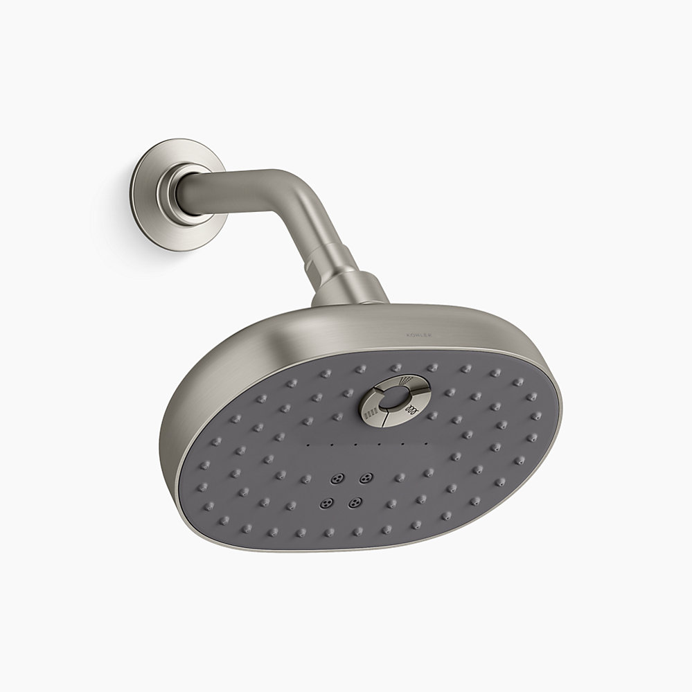 Relax in a shower that fully soaks, restores, and targets sore muscles--all at the touch of a button. The oblong Statement multifunction showerhead lets you choose between Full Coverage with Katalyst air-induction technology for a drenching spray experience, a super-fine luxuriously soft Cloud spray experience, or more-focused, Deep Massage kinetic cross-streams, angled to relieve sore muscles. The multifunction showerhead features intuitive mode selector buttons and comes attached to an offset ball joint for 180-degree rotation, adjusting to any body height. Its sleek, minimalist design complements many other KOHLER faucets and accessories.