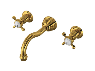Rohl U.3791X-ULB/TO-2 Edwardian Wall Mount Column Spout Bathroom Faucet - Unlacquered Brass
