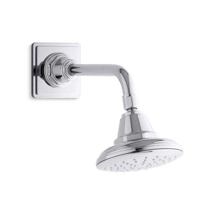 Kohler® Showerhead, 1-Function, Series: 45417-G, Pinstripe®, 1.75 gpm Maximum Flow Rate, 1/2 in NPT, Round, Number of Sprays: 1, Spray Pattern: Full Body, Wall Mount, 80 psi, 5-5/8 in Dia x 4-11/16 in H Head, Metal, Polished Chrome