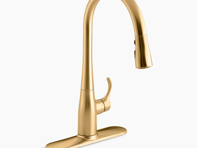 An innovative fit for a variety of kitchens and tasks, this Simplice kitchen faucet combines an elegant, universal design with exceptional ergonomics and functionality. The high-arch swing spout rotates 360 degrees, while the smoothly maneuvering sprayhead pulls down into the sink for up-close tasks, or out of the sink to fill pots. Sculpted buttons on the sprayhead ensure simple operation even with wet, soapy hands. Sweep spray creates a wide, forceful blade of water for superior cleaning. Kohler's docking system, DockNetik, secures the pull-down sprayhead to the spout.