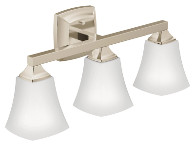 Moen® 3-Globe Bath Light, Series: Voss™, 110 V, 100 W Lamp, Medium Lamp Base, 3 Lamps, Zinc/Glass Housing Material, Polished Nickel Housing Finish, 7.03 in L x 22.05 in W x 9.49 in H Dimensions