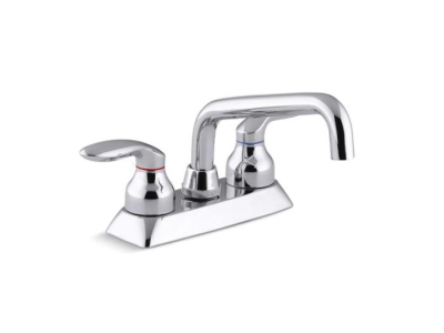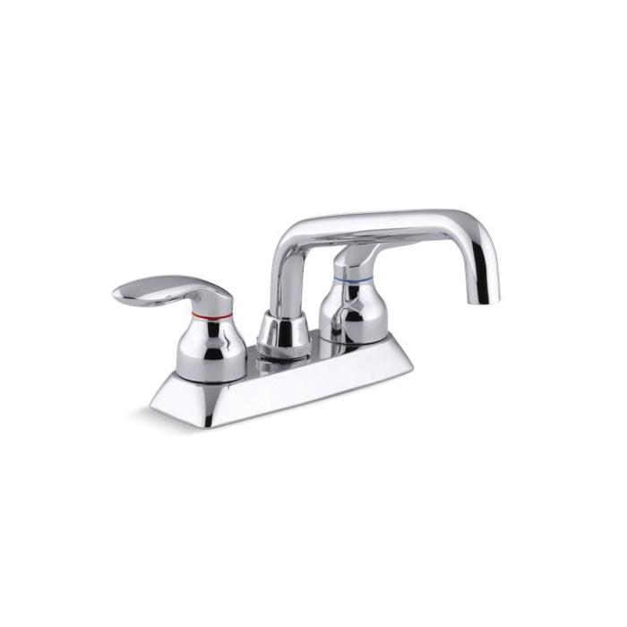 Kohler® Utility Sink Faucet, Coralais®, 2.2 gpm, 4 in Center Distance, Swivel Spout, 6 in Spout Reach, 4 in Spout Height, Lever, 2 Handles, 3 Faucet Holes, 1/2-14, 1-1/8 in Maximum Deck Thickness, Deck Mount, Ceramic Disc Valve/Cartridge, 5-1/2 in H, Metal, Polished Chrome