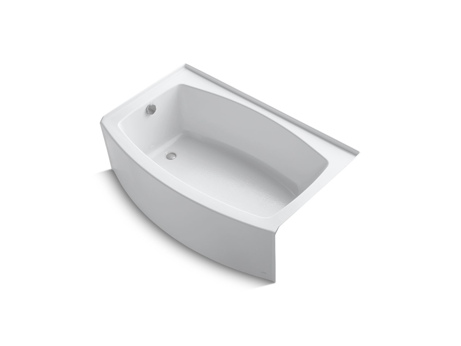 Kohler® Bathtub, Expanse®, Soaking Hydrotherapy Bath Therapy, Curved Shape, 60 in Length, 38 in Width, 18-1/4 in Height, 60 gal Water, Left Drain Location, 1-1/2 in Drain, 45-11/16 x 27-5/8 in Bottom Basin/54 x 31 in Top Basin Bathing Well, 12-5/8 in Soaking Depth, 12-5/8 in Overflow Height, 3-Wall Alcove Mounting, Acrylic, White