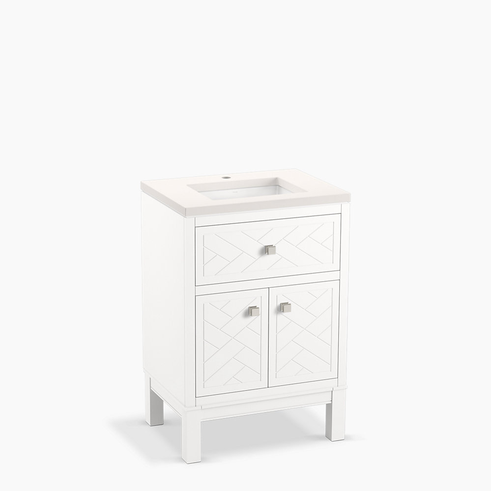 Kohler K-33530-ASB-0 Beauxline(R) 24" Bathroom Vanity Cabinet with Sink and Quartz Top - White