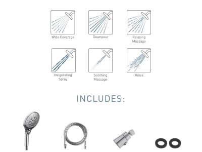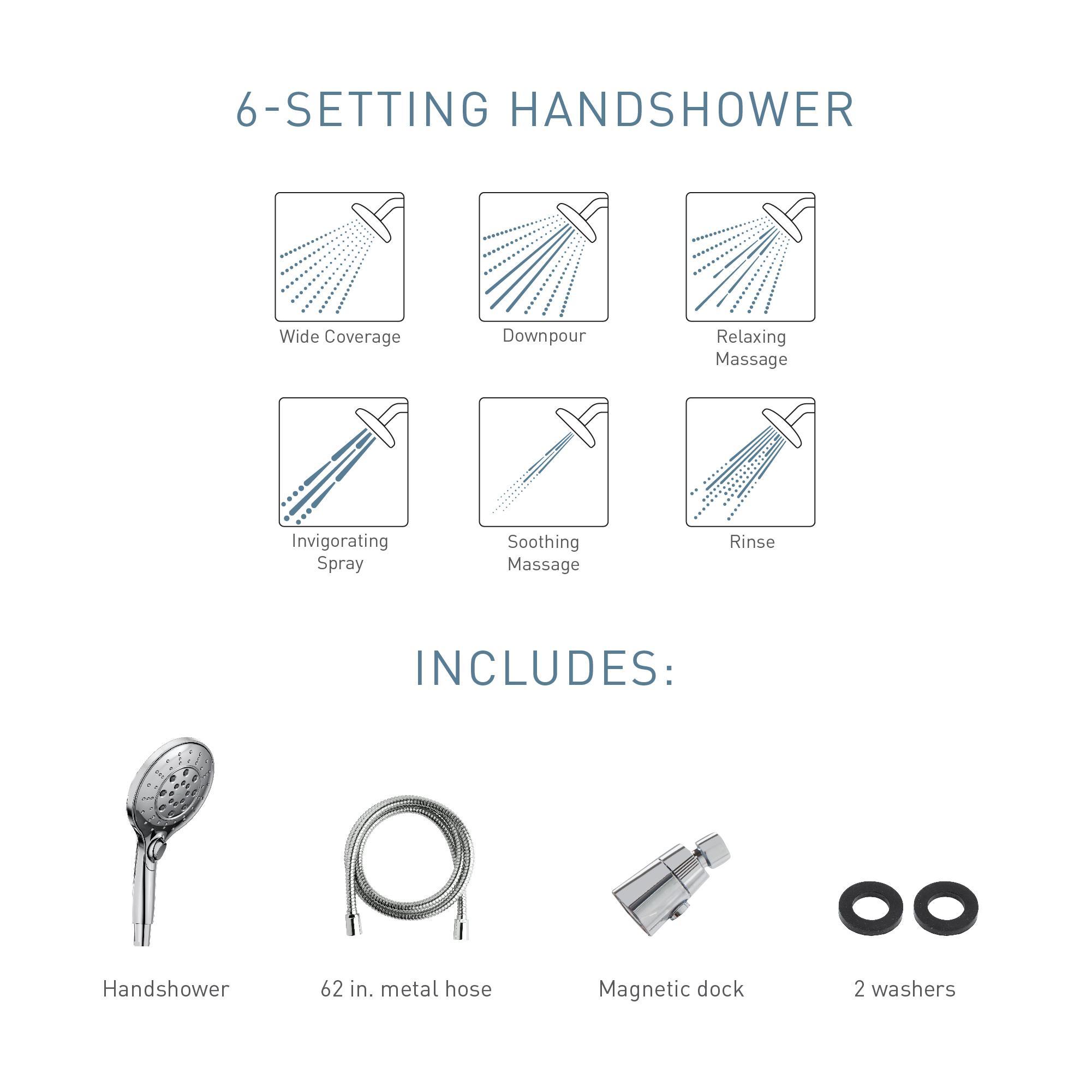 Moen® Handshower, Eco-Performance, Series: 3662EP Series, 5-1/2 in Shower Head Diameter, 1.75 gpm Flow Rate, 59 in Hose Length, Downpour/Relaxing Massage/Massage/Soothing Massage/Invigorating Spray/Rinse Spray, Magnetix™ Docking Holder, 80 psi Pressure, Metal Hose, Brushed Gold, 5-1/2 in W x 11 in H Dimensions, With Slide Bar: No, Import