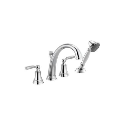 DELTA® Roman Tub Faucet Trim, Series: T4732, Woodhurst™, 10 to 16 in Center Distance, Rigid Slip-On Diverter Spout, 8-7/8 in Spout Reach, 6-9/16 in Spout Height, 59 in Hose, Lever Handle, 2 Handles, Spray Pattern: Full Body, Function: Traditional, Hand Shower: Yes, 11-1/8 in L x 9-3/8 in H, Polished Chrome, Domestic