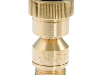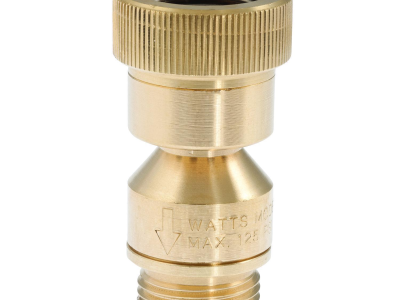 This 3/4 inch lead free dual check vacuum breaker backflow preventer with atmospheric vent prevent high-hazard backsiphonage backflow and low-head backpressure (10 FT or less) from contaminating the potable water supply. It prevents backflow associated with hose connections when screwed directly to a sill cock, yard hydrant, or wall hydrant. It consists of a lead free brass body with two independently operating rubber and stainless steel check valves, with an atmospheric vent located between the them. It is in-line field testable, non-removable and designed for non-continuous pressure applications. It is ideal for installation in service sinks, chemical dispensers, sill cocks, and frost proof hydrants. Maximum working pressure is 125 psi (10.6 bar).