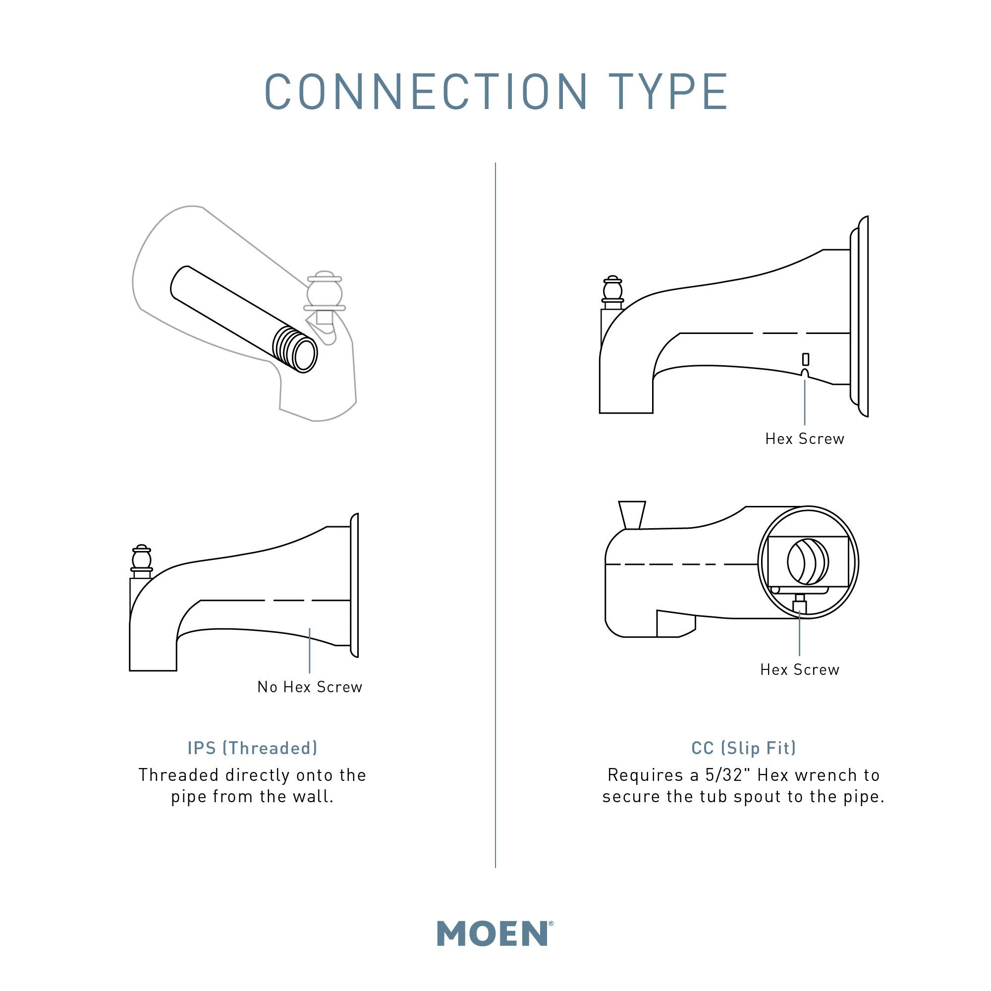 Moen® Non-Diverter Tub Spout, Slip-Fit, CIA™ Collection, 1/2 in Size, Polished Chrome, 3-1/2 in L x 7-1/4 in W Dimensions, Domestic