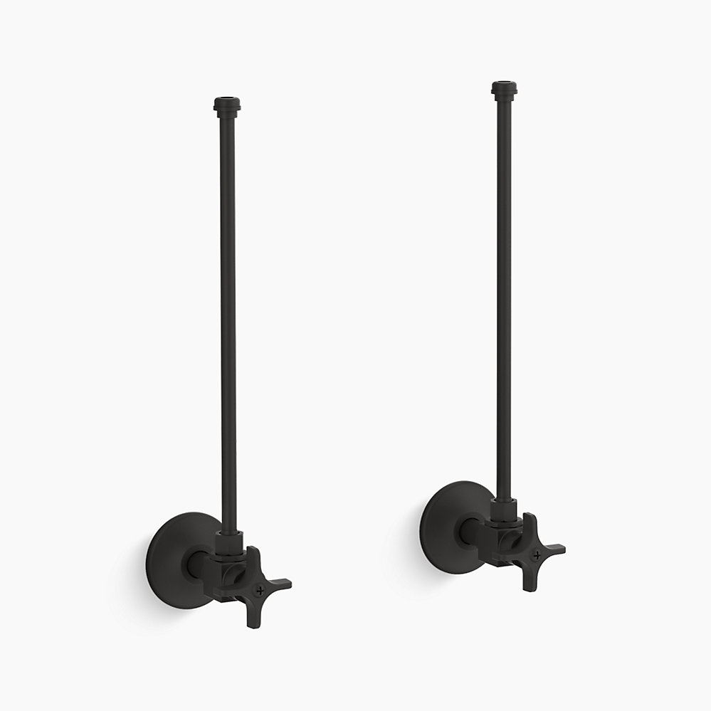 K7605P BL Pair 3/8" NPT Angle Supplies with Stop, Cross Handle and Annealed Vertical Tube - Matte Black