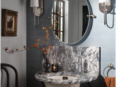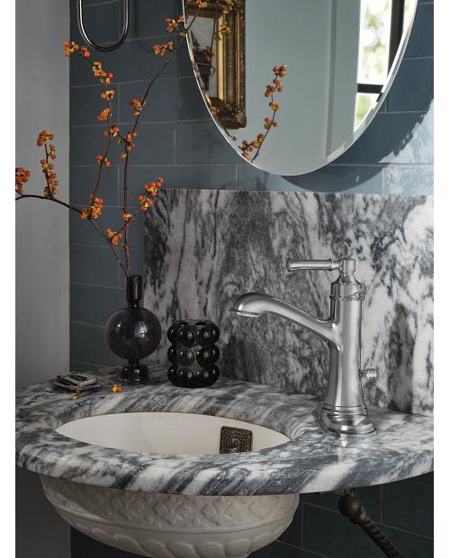 In scale and in style, the Dartmoor collection of bath faucets and accessories is designed to delight. A gently flaired spout is generously sized, adding beauty and function at the sink. Sculpted handles and finial detailing create a tailored look that's thoroughly classic.