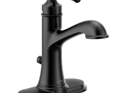 Moen®, 6803BL, Faucet, Bathroom, Series: 6803, Dartmoor Collection, 1.2 gpm Flow Rate, 100 deg High Arc Spout, 5.05 in Spout Reach, 5 in Spout Height, Pivot Action Handle, 1 Handles, Lift Rod Drain, 3/8 in Connection, Compression Connection, 1/8 in Maximum Deck Thickness, 1-Hole Mounting, 1255 Duralast®, 7-1/2 in H x 6 in W Dimensions, Metal, Matte Black, Import