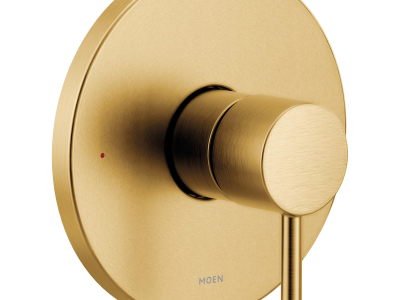 Moen® M-Pact™ M-Core™ Tub/Shower Valve Only Trim, 4-Port, Series: UT3291 Series, Align™ Collection, 1 Handle, Lever Handle, 6-1/2 in Dia Trim, 1213 Ceramic Disk Volume Control Cartridge, Wall Mounting, For Use With: U130/U140 Series Valves, Metal, Brushed Gold, Domestic, Residential