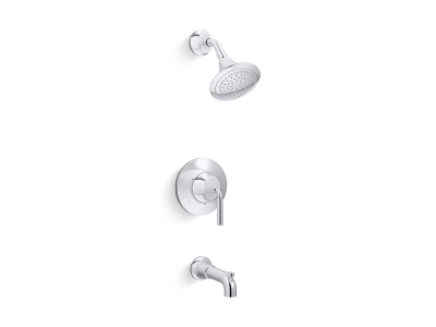 Kohler®, TS27421-4-CP, Bath and Shower Trim Kit, Transitional, Series: TS27421-4, Tone™ Collection, 2.5 gpm Shower Flow Rate, Diverter Bath Spout, 6-9/16 in Spout Reach, 1 Handles, Lever Handle, 6-5/16 in Trim, Pressure Balanced, 1/2 in NPT Valve Inlet Connection, Hand Shower: No, Spray Pattern: Body, 1 Spray Functions, 45 psi Pressure, Wall Mounting, Plastic, Polished Chrome