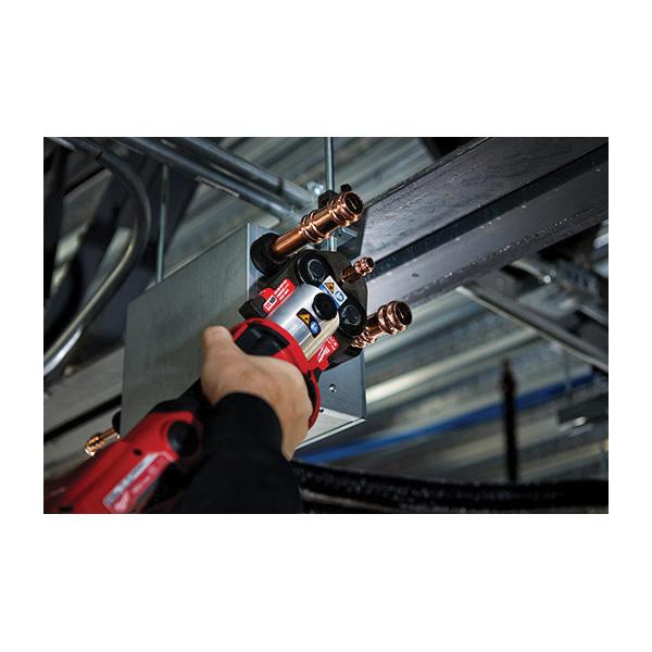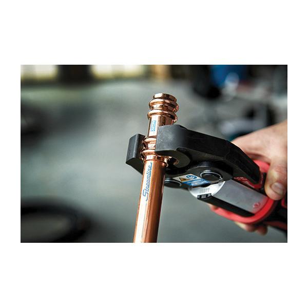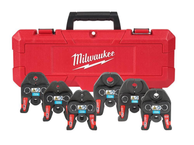 The MILWAUKEE® 1/4" - 7/8" Streamline™ ACR Press Jaws and Ring change the game in refrigerant line installations, offering a flame-free, efficient alternative to traditional brazing. The jaws and ring unlock productivity for HVAC system installers, eliminating nitrogen purges, combustible gases, and expensive silver solder necessary for traditional pipe connection methods. With an easy-open, in-line design, the press jaws are optimized for the tightest spaces, utilizing the M18™ FORCE LOGIC™ Press Tool or the extended stroke M18™ FORCE LOGIC™ Long Throw Press Tool. The Streamline™ ACR Press Jaws and Ring are designed for use on Mueller Streamline™ ACR Press fittings.