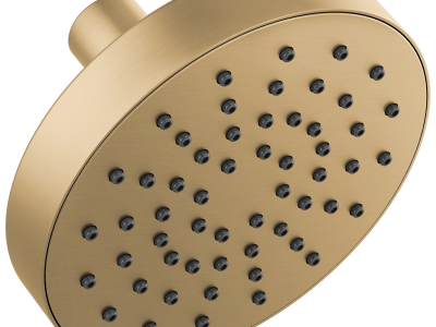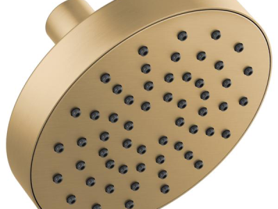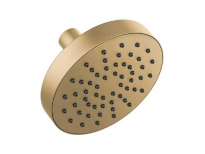 Brizo® Showerhead, Linear Multi-Function Universal, ESSENTIAL™ Collection, 2.5 gpm Maximum, 1/2-14 NPSM Connection, Round Shape, 1 Sprays, Spray Pattern: Full, Wall Mounting, 80 psi Pressure, 5 in Dia x 3-1/8 in H Head, 5 in Overall Length, 5 in Overall Width, 3 in Overall Height, Brass, Luxe Gold, Import
