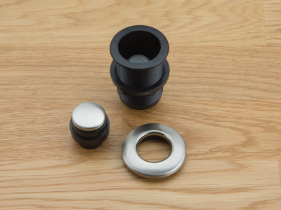 Enjoy the ability to turn your garbage disposal on and off with the push of a button. The Garbage Disposal Air Switch Button sends a burst of air down a tube to actuate the disposal. This kit includes a satin nickel button and a chrome button to choose the best complement your kitchen faucet.
