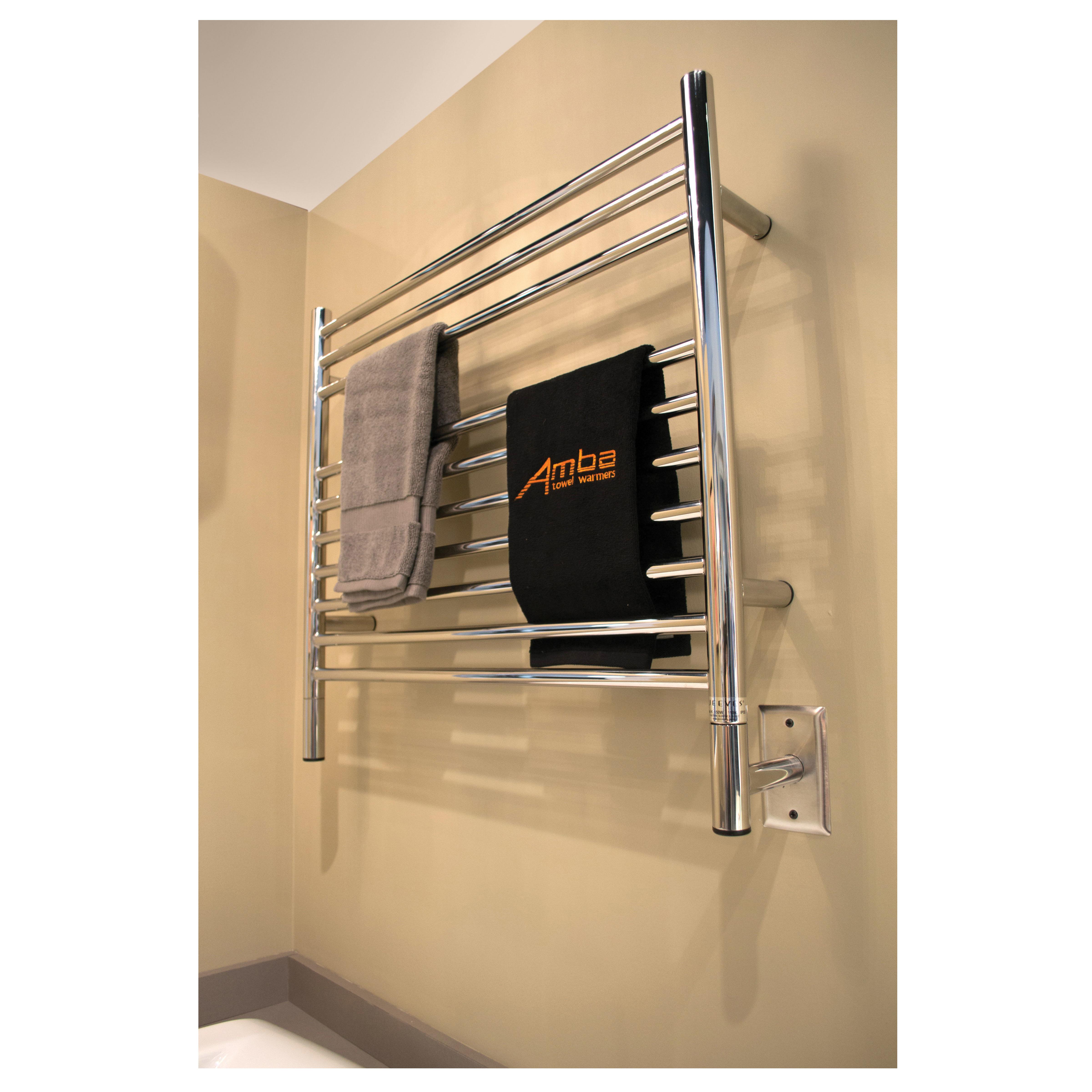 Amba®, KSP, Towel Warmer, Straight, Series: Jeeves, Hardwired Power Source, 110 V, 150 W Wattage, 1.3 A, 10 Bars, 27-3/4 in Height, 30-1/4 in Width, 4-1/2 in Depth, 120 to 150 deg F, Wall Mounting, 304 Stainless Steel, Polished Stainless Steel