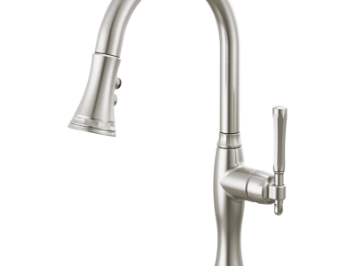 Brizo®, 64058LF-SS, Kitchen Faucet, Pull-Down, 1.8 gpm Flow Rate, Swivel Spout, 9 in Spout Reach, 10.438 in Spout Height, Lever Handle, 1 Handles, 1 Faucet Holes, 1-1/2 in Faucet Hole, Function: Spray/Aerated Stream, 2 Spray Functions, 3 in Maximum Deck Thickness, Deck Mounting, 18.06 in H x 5.13 in W x 5.69 in L Dimensions, Brass, Stainless, Import