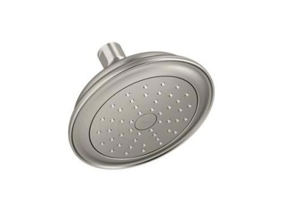 Kohler® Showerhead, 1-Function, Series: 72774-G, Artifacts®, 1.75 gpm Maximum Flow Rate, 1/2 in NPT, Round, Number of Sprays: 1, Spray Pattern: Full Body, Wall Mount, 80 psi, 6 in Dia x 3-15/16 in H Head, Metal, Vibrant® Brushed Nickel
