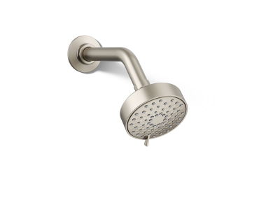 The KOHLER® Awaken wall-mount three-function showerhead brings KOHLER® quality, design, and performance to your bath. Advanced spray performance delivers three distinct sprays - wide coverage, intense drenching, or targeted - while an ergonomically designed thumb tab smoothly transitions between sprays with a quick touch. The artfully sculpted sprayface reveals simple, architectural forms that complement contemporary and minimalist baths.