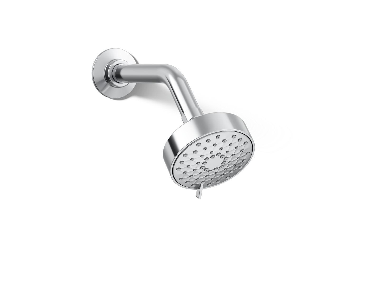 The KOHLER® Awaken wall-mount three-function showerhead brings KOHLER® quality, design, and performance to your bath. Advanced spray performance delivers three distinct sprays - wide coverage, intense drenching, or targeted - while an ergonomically designed thumb tab smoothly transitions between sprays with a quick touch. The artfully sculpted sprayface reveals simple, architectural forms that complement contemporary and minimalist baths.