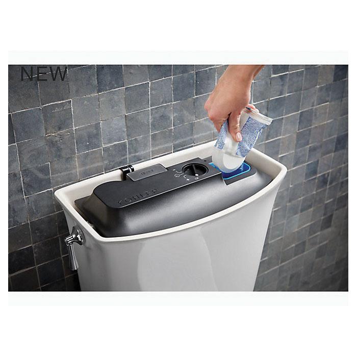 This KOHLER® Corbelle ContinuousClean XT toilet tank features an automatic dispensing system that delivers a consistent amount of toilet bowl cleaner with every flush to keep your bowl cleaner between flushes. Simply place a cleaning tablet in the tank compartment, set the desired amount with the adjustment dial, and the system does all the work. This water-efficient 1.28 gpf toilet tank also utilizes the innovative AquaPiston® technology, a patented flush engine that delivers a fast, powerful, and virtually plug-free flush. Pair this toilet tank with a coordinated bowl for complete toilet.