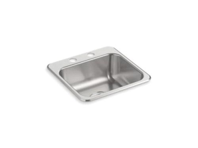 Sterling®, B153-2, Bar/Kitchen Sink With SilentShield® Technology, 13-1/4 in Bowl Length, 11 in Bowl Width, 5-1/2 in Bowl Depth, 3-5/8 in Drain Opening, 2 Faucet Holes, 4 in Faucet Hole Spacing, 1 Bowls, 15 in L x 15 in W x 5-7/8 in H Overall, Top Mounting, 20 ga Stainless Steel, Luster