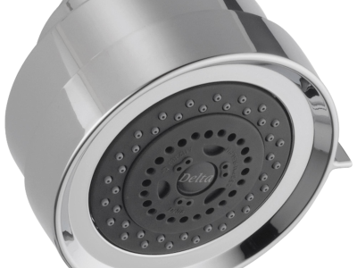 DELTA® Universal Premium Shower Head, Touch-Clean® Collection, 2.5 gpm Minimum, 1/2 in Connection, Round Shape, 3 Sprays, Spray Pattern: Full Body/Massage/Soft Drench, Wall Mounting, 80 psi Pressure, 4-1/2 x 4 in Head, Brass, Polished Chrome, Import
