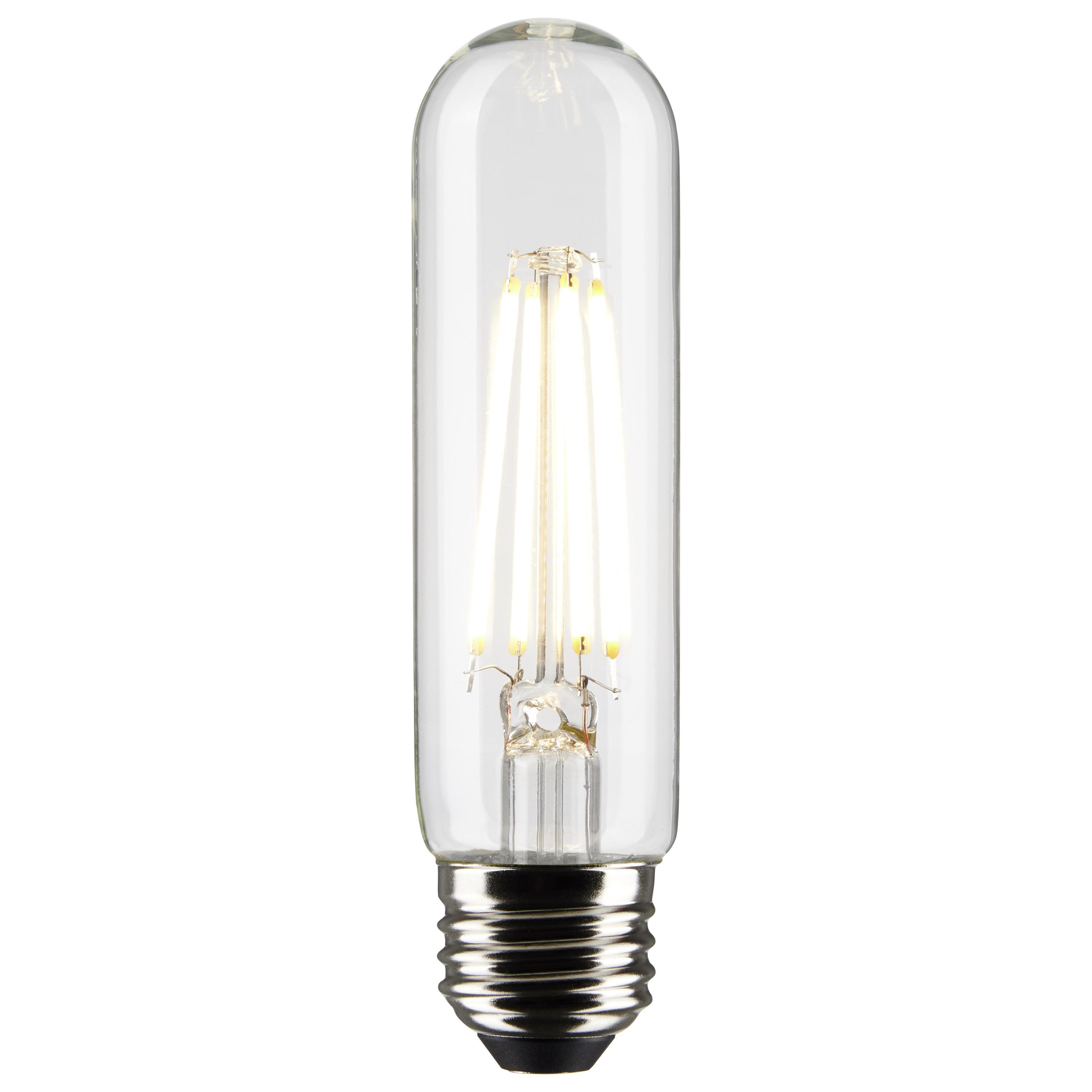 SATCO®, S21351, Bulb, 8 W Wattage, 60 W Incandescent Equivalent, 120 V, E26 Lamp Base, T10 Shape, 800 Lumens, 15000 hr Average Life, Warm White, 90 CRI, 3000 K Color Temperature, Clear Lamp, Dimmable Ballast, Enclosed Fixture, 300 Beam, 1.25 in Dia x 5.00 in L Dimensions
