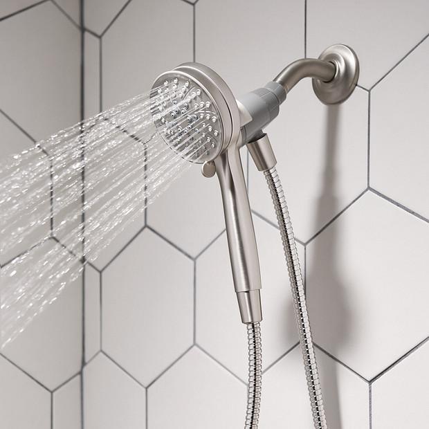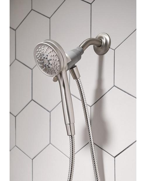 Moen®, 26000SRN, Shower, Hand, Series: 26000, Attract™ Collection, 3.5 in Shower Head Diameter, 1.75 gpm Flow Rate, 59 in Hose Length, 6-Function Spray, 80 psi Pressure, IPS Connection, Metal Hose, Spot Resist Brushed Nickel, 9-1/2 in H Dimensions, Import