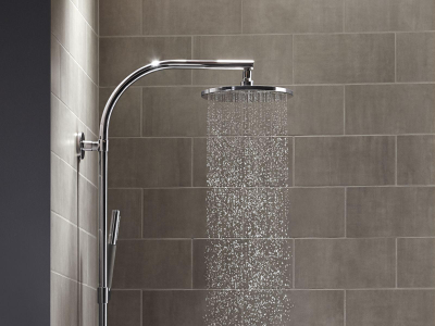 Enjoy a shower that simulates the soaking deluge of a warm summer downpour. This contemporary-style rainhead features innovative Katalyst air-induction technology, which efficiently mixes air and water to produce large water droplets and deliver a powerful, thoroughly drenching overhead shower experience. Its clean good looks and durable finish coordinate with many other KOHLER faucets and accessories.
