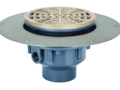 Sioux Chief 822 series adjustable floor drain shall be used where necessary in drainage systems. Floor drain shall have an 18 gauge stainless steel deck/mounting flange and ABS/PVC body with SCH 40 hub connection. Floor drain shall allow adjustment of 3/4" above the deck flange. Strainer shall be heel-proof and meet applicable load requirements for intended use. Trap primer port shall be threaded 1/2 in FIP for optional connection. Designed in accordance with ASME A112.6.3-2001.