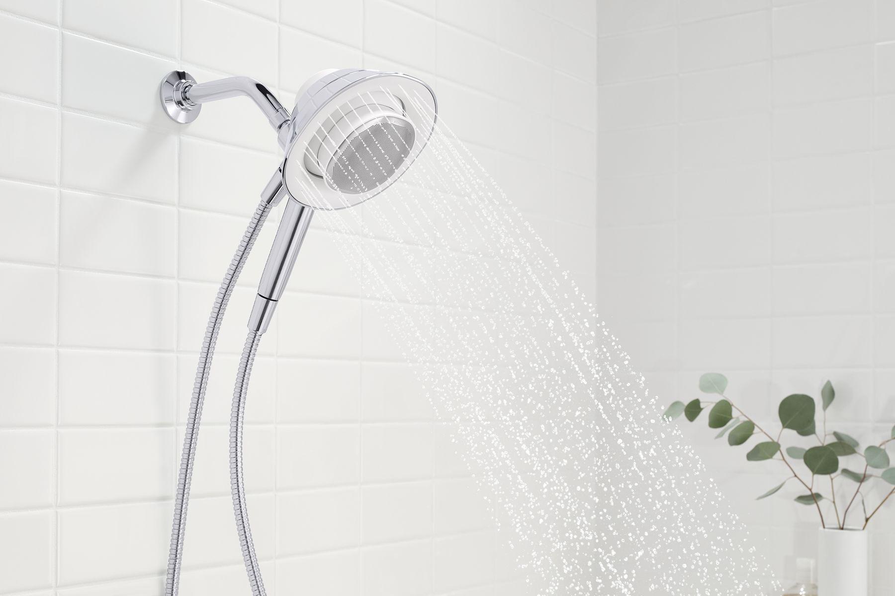 Kohler®, 28241-GKE-CP, Handshower and Wireless Speaker, Series: 28241-GKE, Moxie® Collection, 6-1/2 in Shower Head Diameter, 1.75 gpm Flow Rate, 61 in Hose Length, Full-Coverage Spray, 80 psi Pressure, 1/2 in NPT Connection, Metal, Polished Chrome, 10-15/16 in H x 5-5/16 in W Dimensions, With Slide Bar: No