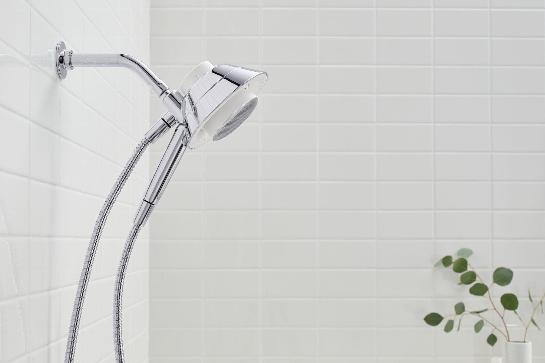 Kohler® 28241-GKE-CP 28241-GKE Moxie® Handshower and Wireless Speaker, 6-1/2 in Dia, 1.75 gpm Flow Rate, 61 in L Hose, 1/2 in NPT Connection, Polished Chrome