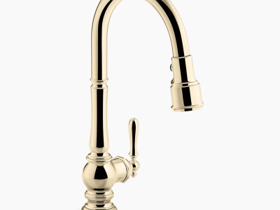 The KOHLER(R) Artifacts faucet collection brings you classic designs reimagined in fresh ways for various task areas of the kitchen. This Artifacts pull-down kitchen sink faucet displays vintage style with its high-arch spout and turned lever handle. The three-function pull-down sprayhead has you covered for a range of tasks: BerrySoft spray for food prep, an aerated stream for filling pots, and Sweep spray for cleaning. Kohler's DockNetik docking system secures the sprayhead to the spout.