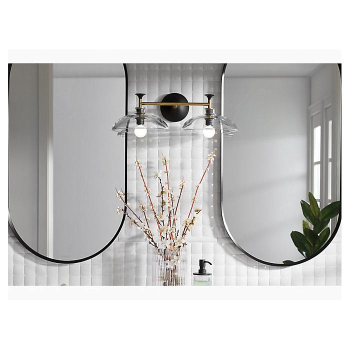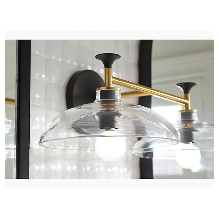 With domed, clear-glass shades, mixed-metal trumpet bases, and intersecting rod supports, the KOHLER® Tone lighting collection delivers a fresh take on midcentury modern style. Blending minimalism, warmth, and thoughtful functionality, Tone lighting fixtures are versatile enough for any space in your home. These contemporary pieces were created to complement the KOHLER® Tone faucet collection for a cohesive home design.