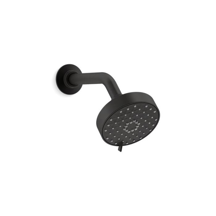 Kohler® Showerhead, Multi-Function, Series: K-72419-G, Awaken® G110 Collection, 1.75 gpm Maximum, 1/2 in Connection, Round Shape, 3 Sprays, Spray Pattern: Intense Drenching/Targeted Spray/Wide Coverage, Wall Mounting, 45 psi Pressure, 4-7/16 in Overall Width, 2-7/8 in Overall Height, Plastic, Matte Black