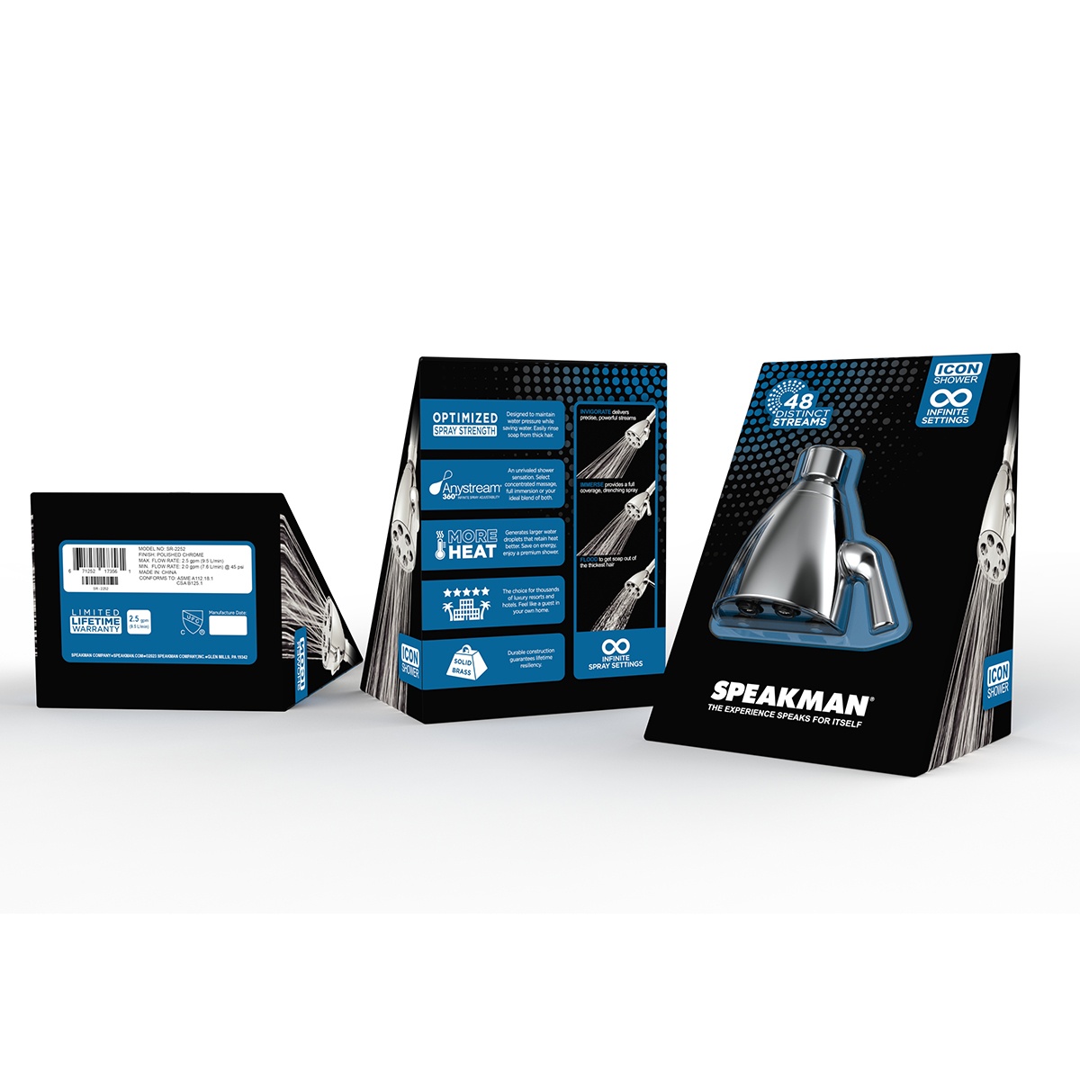 The Speakman Icon S-2252 Multi-Function Shower Head has a signature silhouette, updated with modern contours. This brass fixture features our patented Anystream technology and is one of our top rated shower heads. The Icon Shower Head S-2252 has 6 precision jets that transform water into 48 full-coverage sprays. The sculpted arm rotates effortlessly in either direction, allowing you to transition between intense needling, gentle rain and drenching flood sprays. The 360-degree rotation also serves as a self-cleaning mechanism, ensuring each stream is delivered at its intended pressure, every time. Available in an assortment of finishes and flow rates to pair flawless style with unparalleled performance.