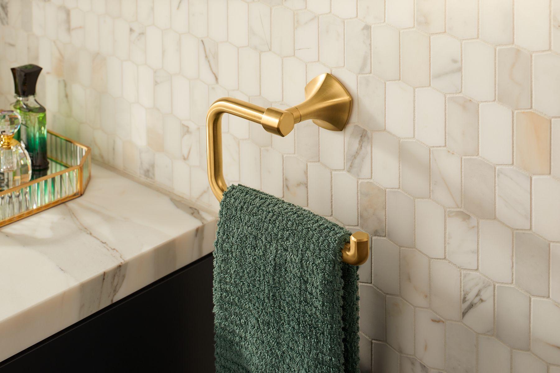 Kohler®, 27063-AF, Towel Ring, Occasion® Collection, 3-1/2 in Overall Depth, 5-1/2 in Overall Height, 2-5/16 in Base, Zinc, Vibrant French Gold