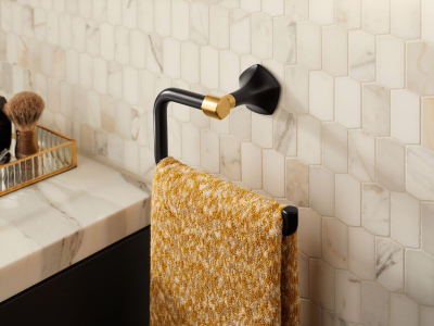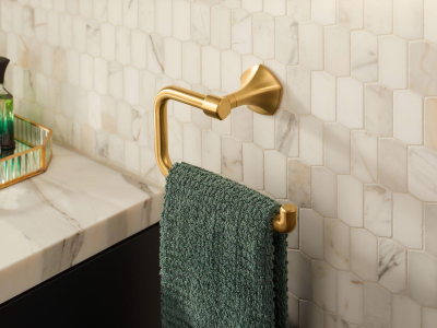 Unapologetically luxurious and truly unforgettable, KOHLER® Occasion bathroom faucets and accessories draw inspiration from 1960s Hollywood glamour and extravagance. Fashioned after the era’s sleek dress lines and bold car designs, the Occasion collection reflects graceful elegance, blending classic midcentury with modern design. Customize your bathroom with the collection’s distinctive pentagonal accents, faceted bases, flowing lines, and delicate edges. The Occasion towel ring adds high fashion and function to your bath space—in finishes to match your faucet and other accessories.