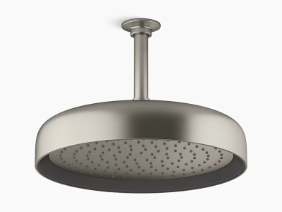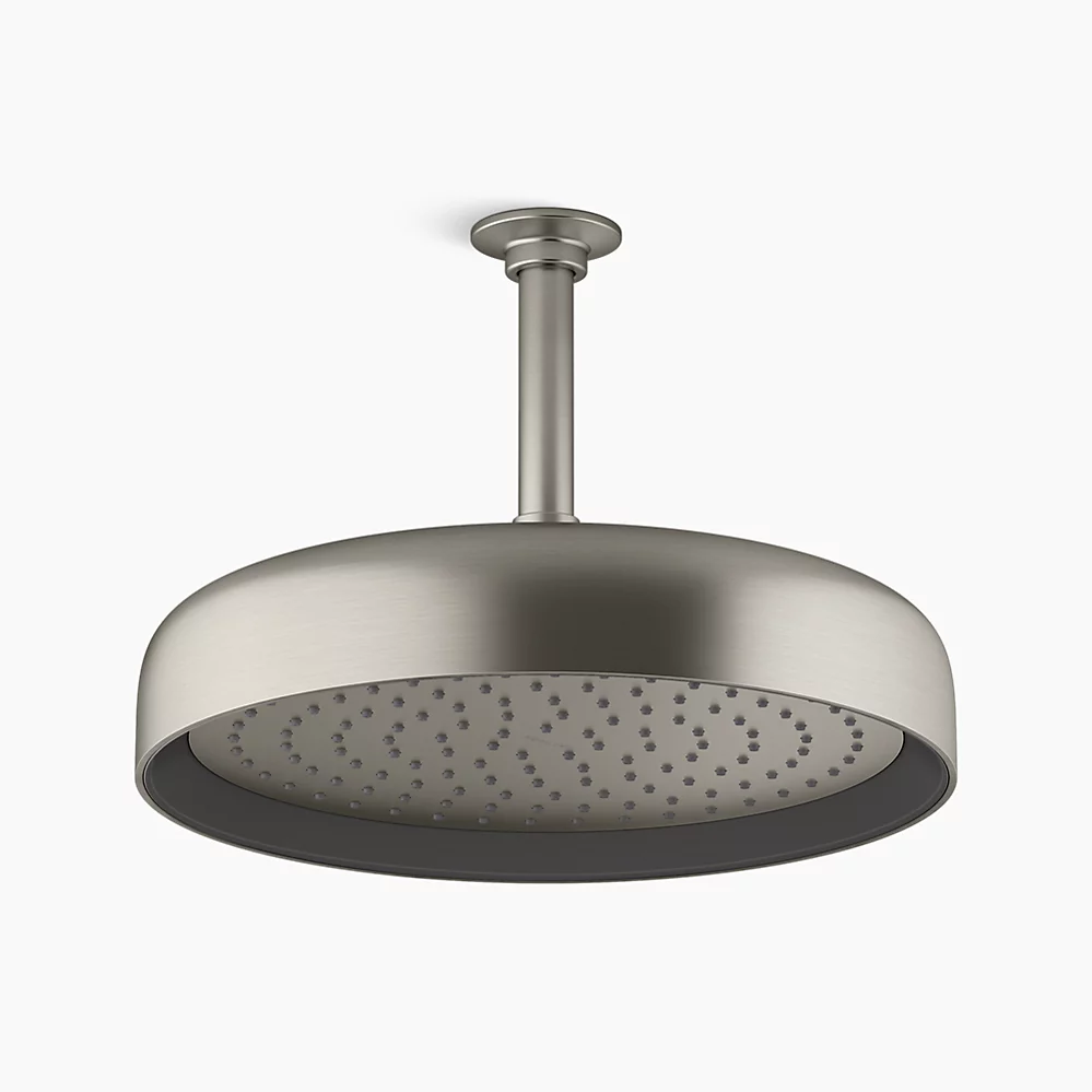 Enjoy a shower that simulates a soaking summer storm, all without wasteful overspray. This contemporary 12" round rainhead features Full Coverage with Katalyst air-induction technology, which efficiently mixes air and water to produce large water droplets and deliver a powerful, consistent, full overhead spray experience. The single-function rainhead's clean good looks and durable finish coordinate with many KOHLER faucets and accessories.