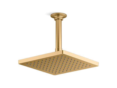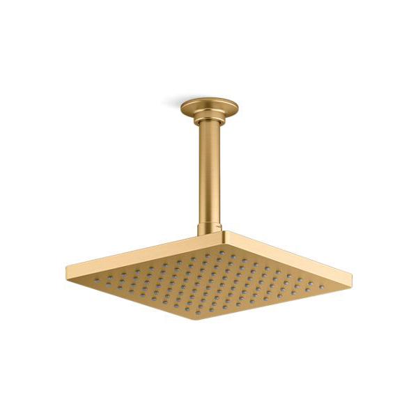 Kohler® Rain Showerhead, 1-Function, Series: 26148, Honesty™ Collection, 2.5 gpm Maximum, 1/2 in Connection, Square Shape, 1 Spray, Spray Pattern: Drenching, Ceiling Mounting, 80 psi Pressure, 8 in L x 8 in W Head, 8 in Overall Length, 8 in Overall Width, 2-7/16 in Overall Height, Plastic, Vibrant® Brushed Moderne Brass