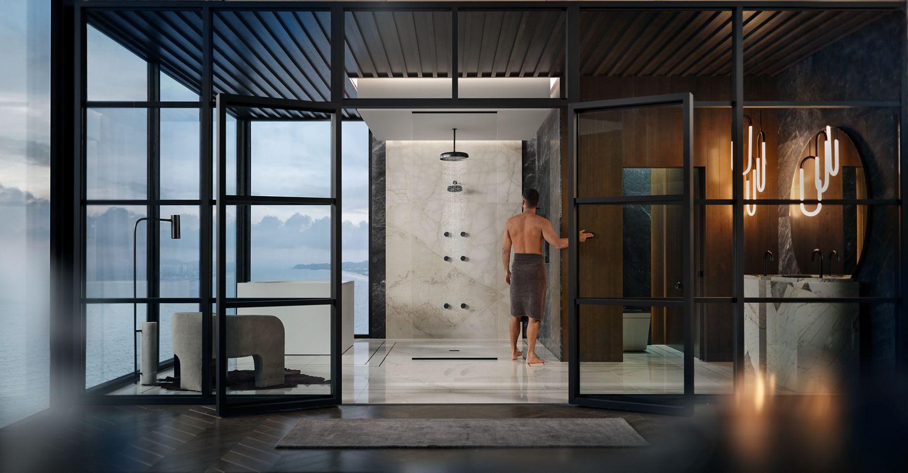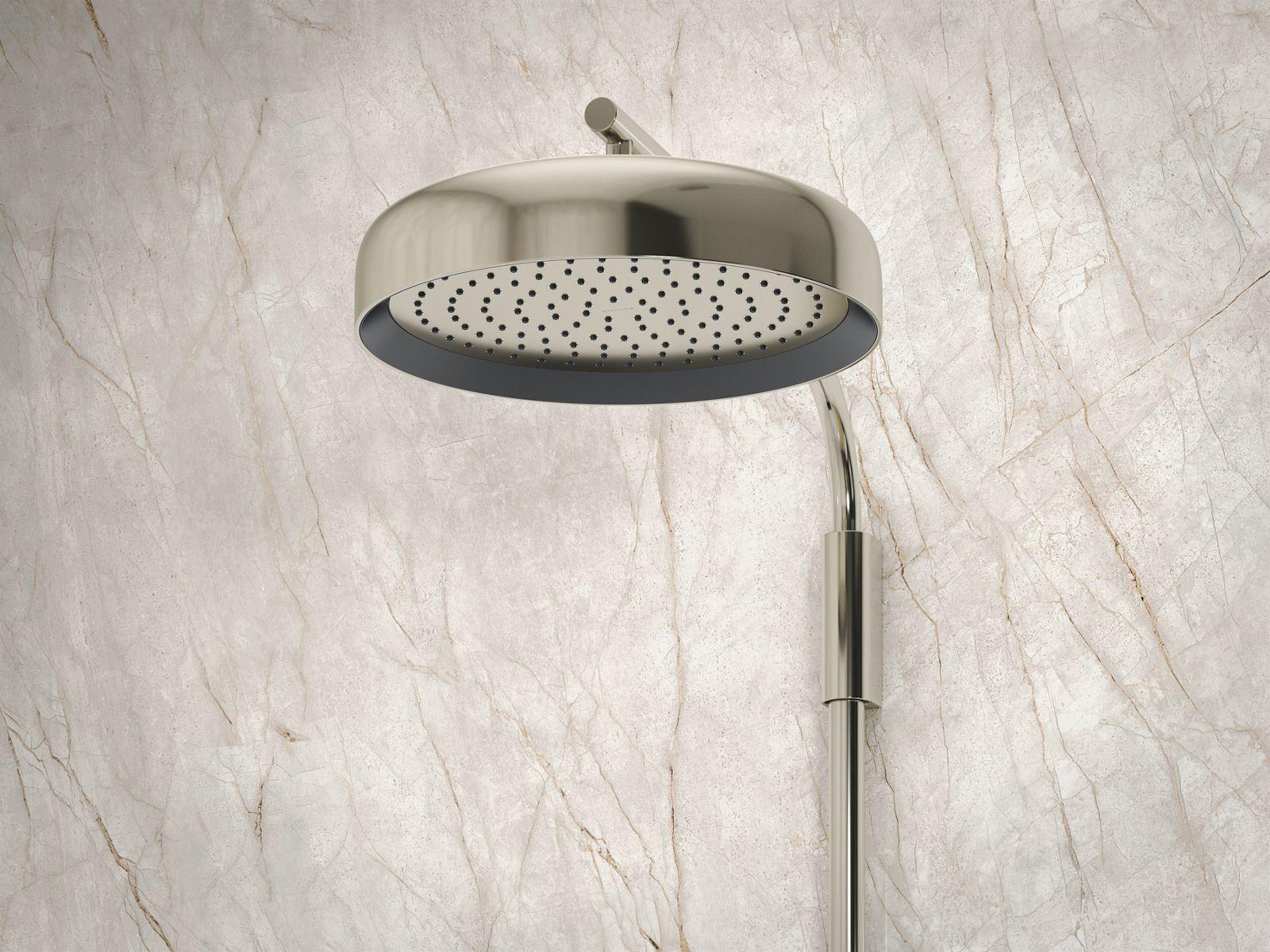 Enjoy a shower that simulates a soaking summer storm, all without wasteful overspray. This KOHLER® Statement contemporary 14" round ceiling-mount rainhead features Full Coverage with Katalyst® air-induction technology, which efficiently mixes air and water to produce large water droplets and deliver a powerful, consistent, full overhead spray experience. The single-function rainhead's clean design and durable finish coordinate with many KOHLER® faucets and accessories.