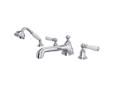 Rohl U.3737L-APC Edwardian 4-Hole Deck Mount Low Level Spout Tub Filler with Handshower - Polished Chrome