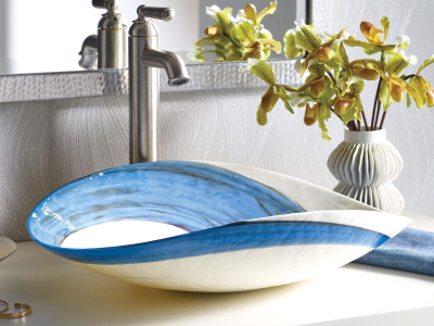 Crafted in Italy of hand-spun Murano glass, the Sorrento vessel sink provides a graceful statement piece for elevated contemporary designs. Its generous 20-inch width offers ample useable space within the basin without sacrificing practicality. The smooth, nonporous surface of the sink prevents staining and its glass has been certified to resist cracking after exposure to both impact and temperature change. Using approximately half the energy required to create a porcelain sink, the Sorrento delivers sustainable luxury to your space. The Sorrento delivers sustainable luxury to your space.